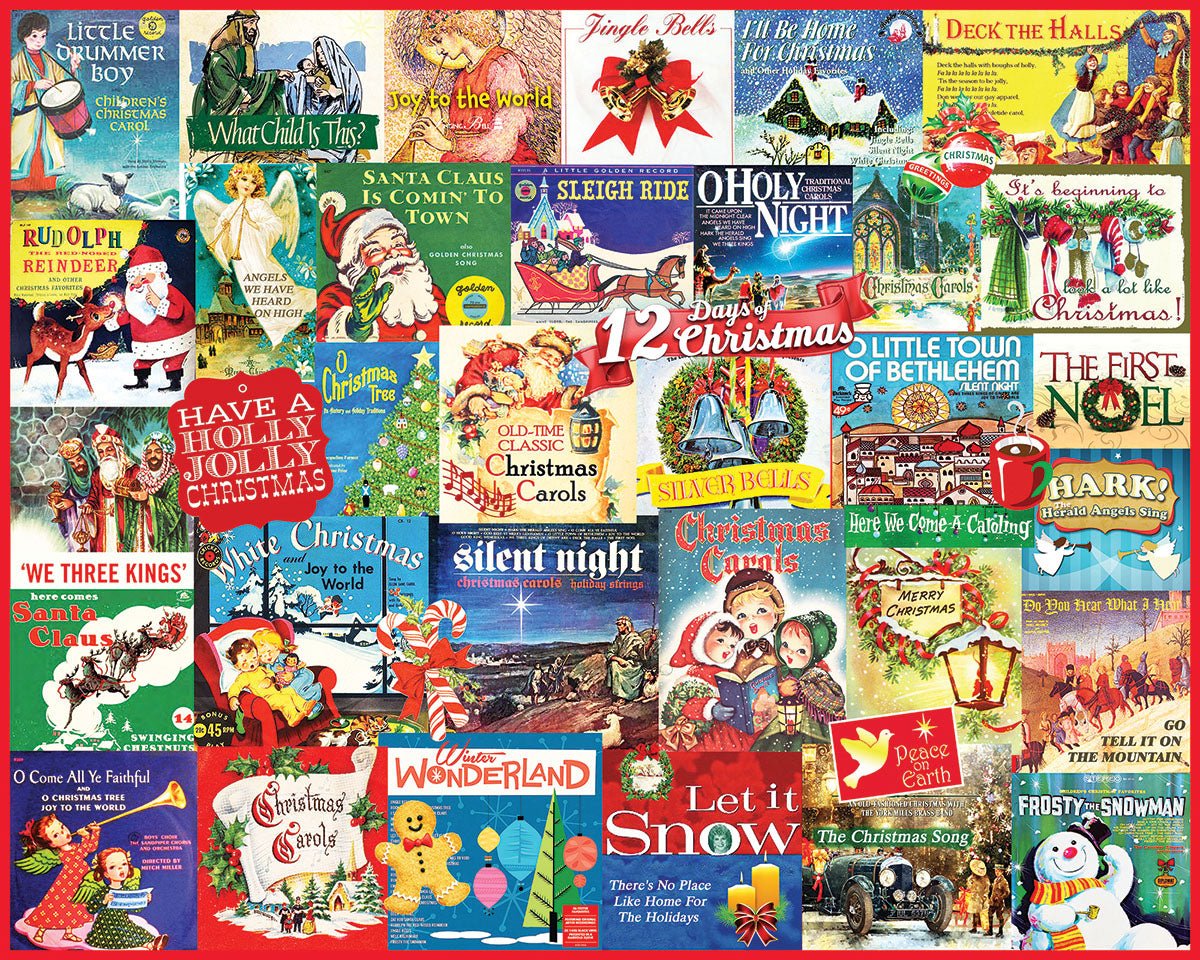 1721t Christmas Carols. Hark the Herald Angels Sing, We Three Kings, O Come All Ye Faithful, and more. Artist Mark Karvon gathered some of the most recognizable Christmas Carols that have survived the times in this collage style 1000 piece jigsaw puzzle.