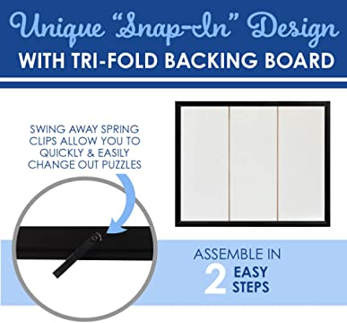 - Unique “snap-in” design and thick corrugated tri-fold backing board that assists you in quickly assembling your Frame in seconds using 2-easy steps (NO TOOLS REQUIRED).
